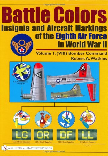 Battle Colors: Insignia and Aircraft Markings of the Eighth Air Force in World War II: Vol.1/(VIII) Bomber Command is the first in the, thus far, three volume series by Schiffer Publications on the United States' Eighth and Ninth Air Forces during Wolrd War Two. This volume covers the bomber units of the Eighth Air Force.